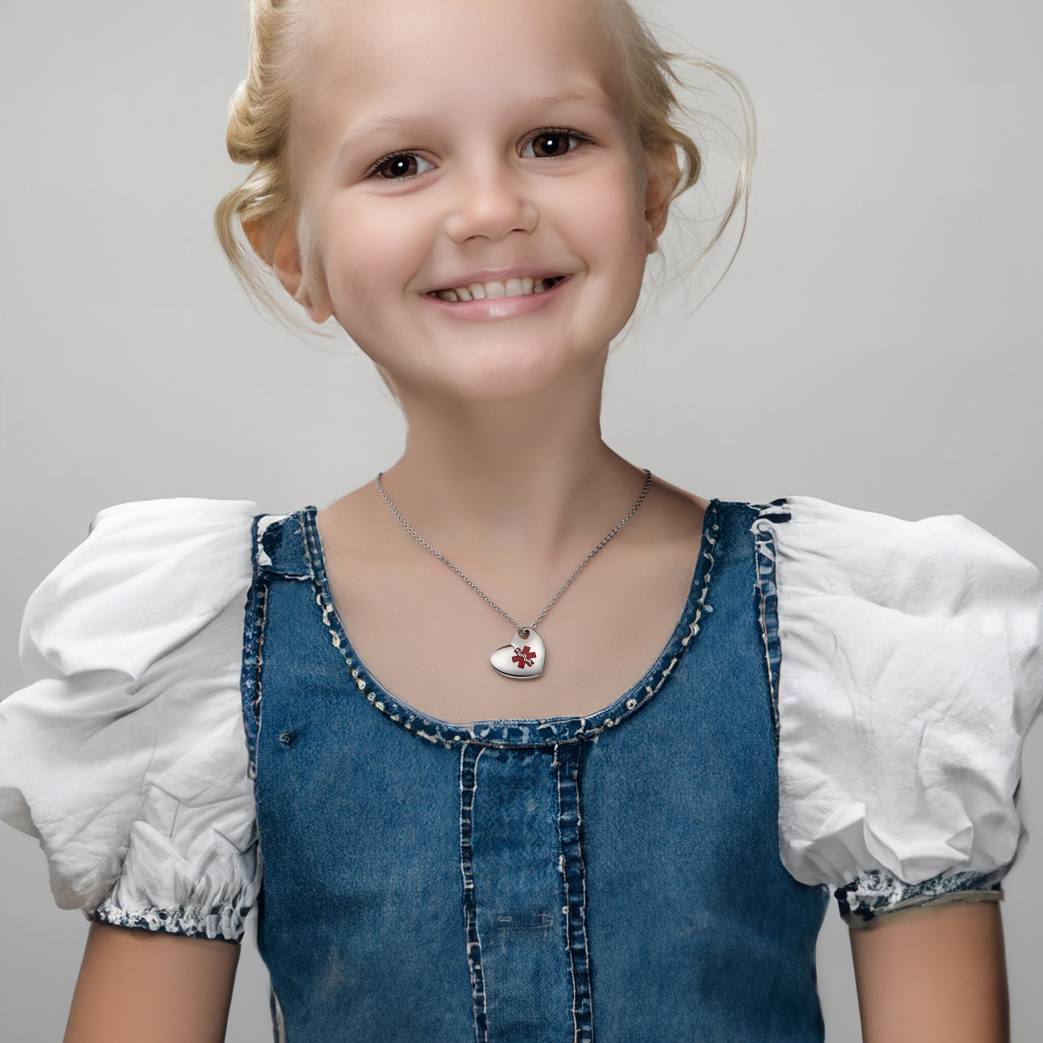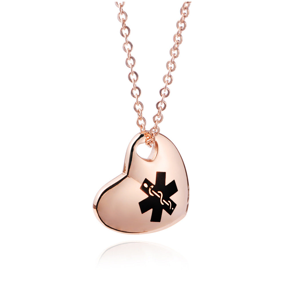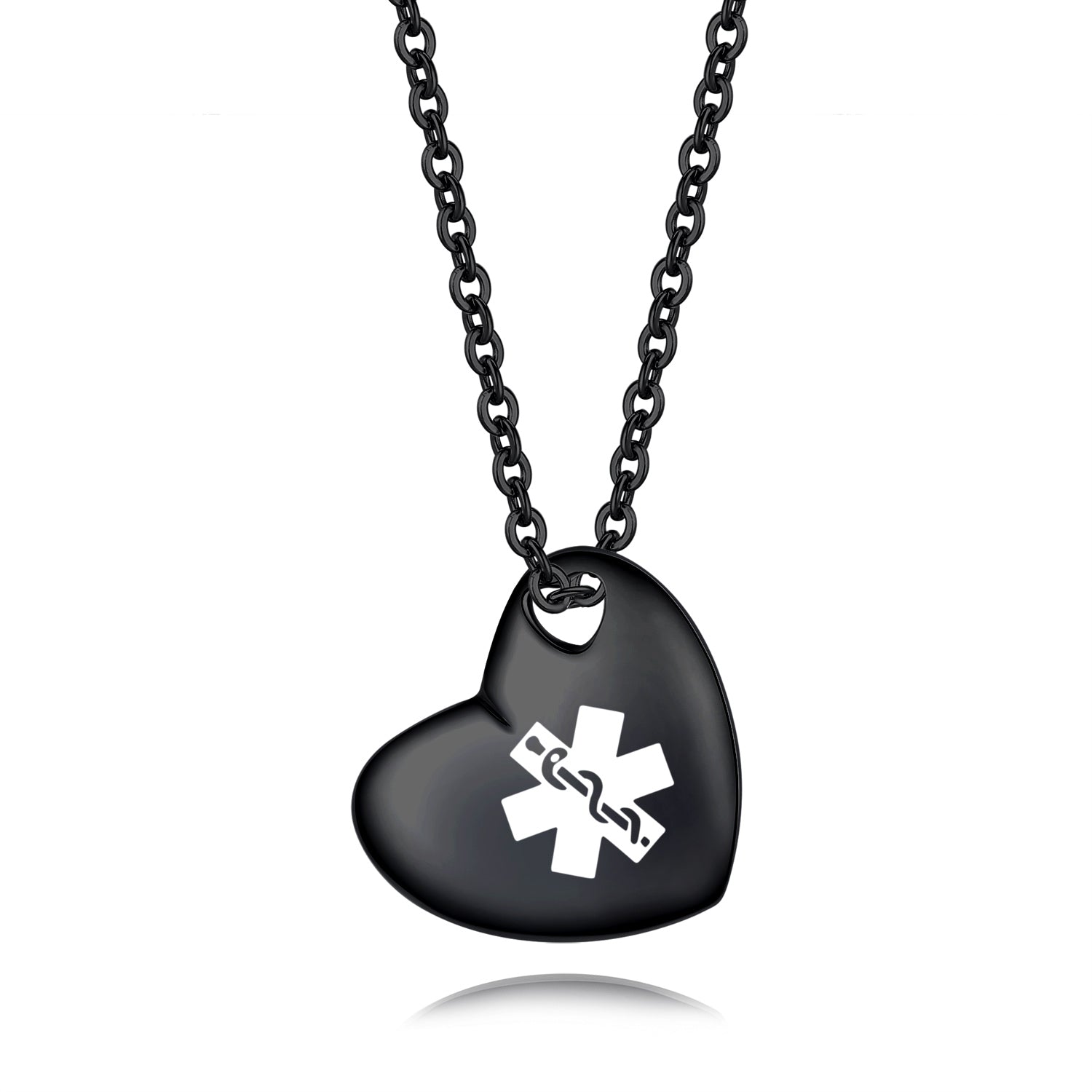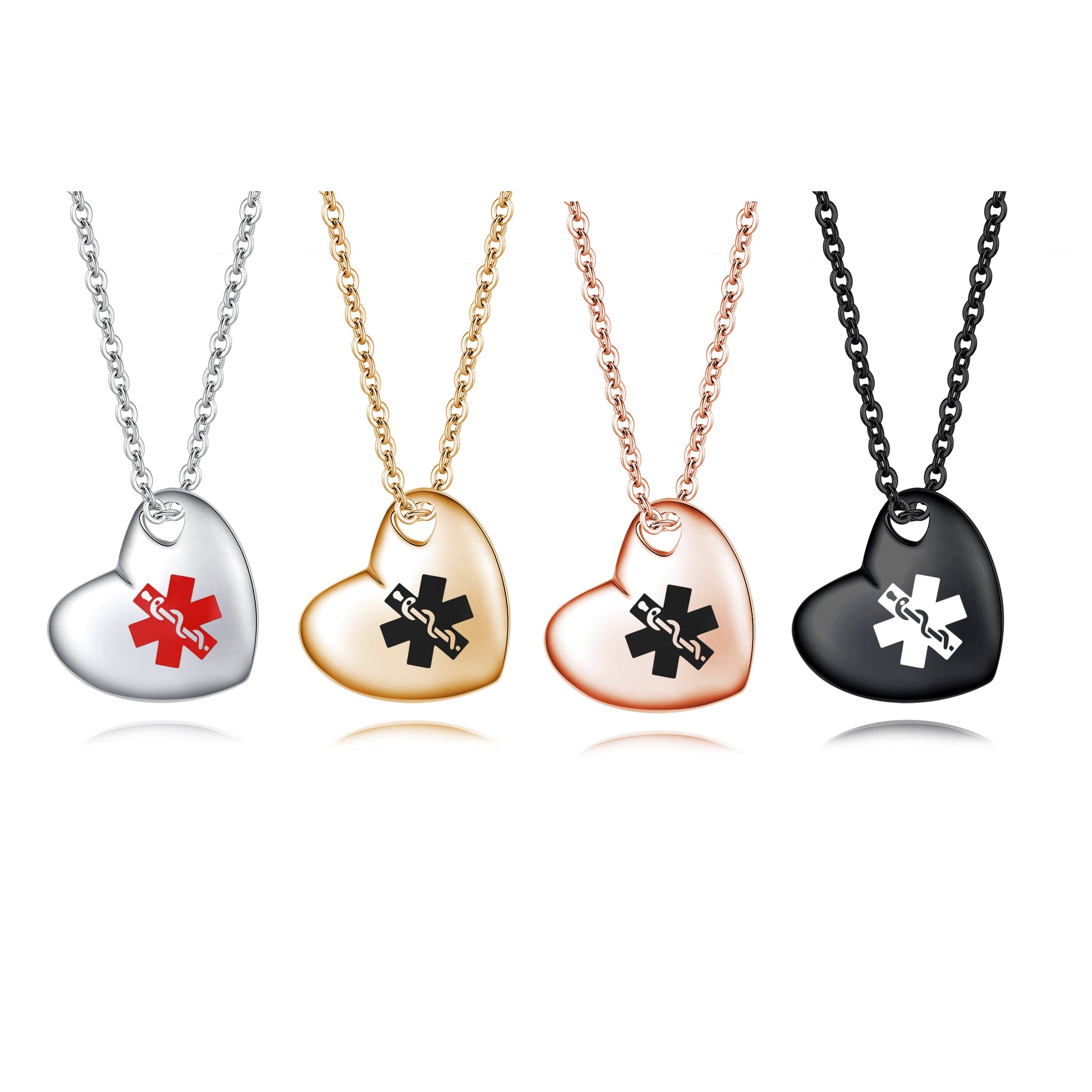 SP0056 Medical ID Stainless Puffy Heart Necklace ~ Custom Engrave
